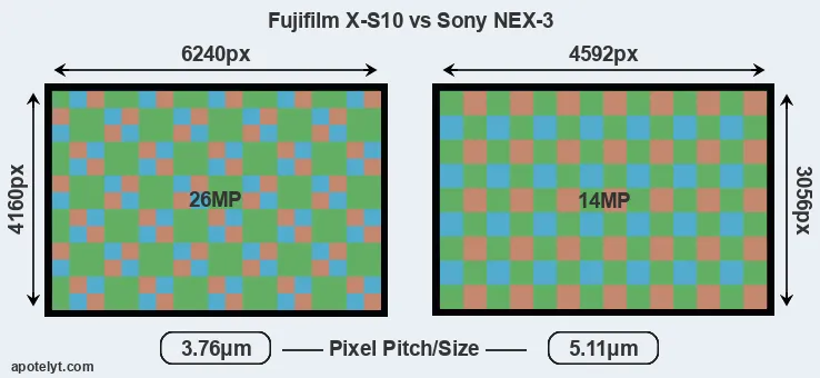 | Sensor Specs | Fujifilm X-S10 | Sony NEX-3 |