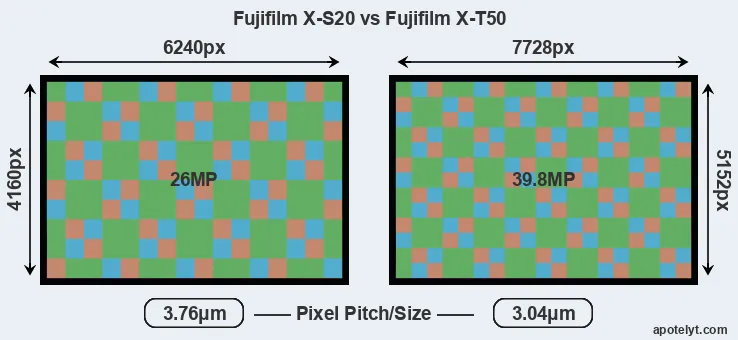 | Sensor Specs | Fujifilm X-S20 | Fujifilm X-T50 |