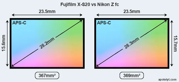 | Sensor Specs | Fujifilm X-S20 | Nikon Z fc |