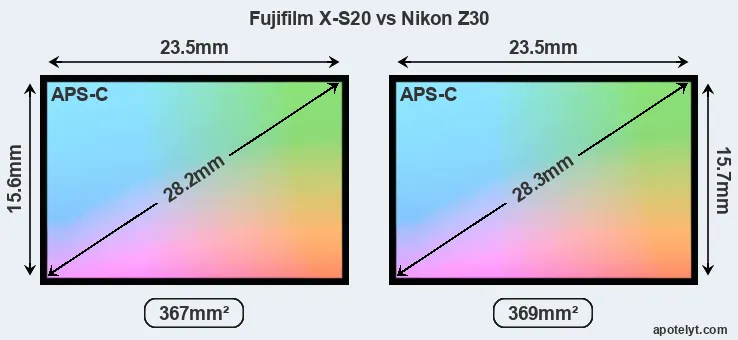 | Sensor Specs | Fujifilm X-S20 | Nikon Z30 |