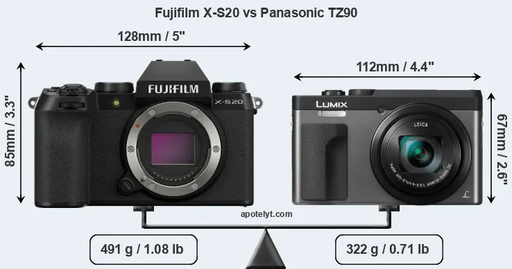 Size Fujifilm X-S20 vs Panasonic TZ90