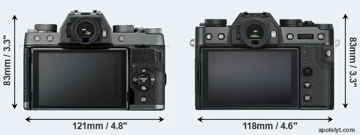The above size and weight comparisons are to some extent incomplete since they do not consider the interchangeable lenses that both of these cameras require. In this particular case, both cameras feature the same lens mount, so that they can use the same lenses. You can compare the optics available in the Fujinon X Lens Catalog. Mirrorless cameras, such as the two under consideration, have the additional advantage of having a short flange to focal plane distance, which makes it possible to mount many lenses from other systems onto the camera via adapters.