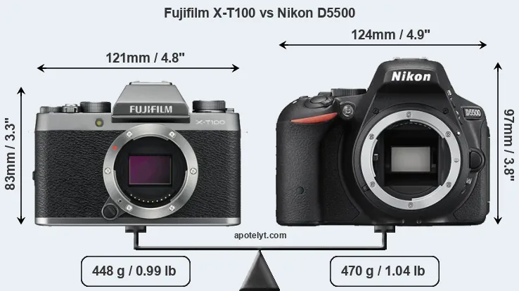 | Body Specs | Fujifilm X-T100 | Nikon D5500 |
