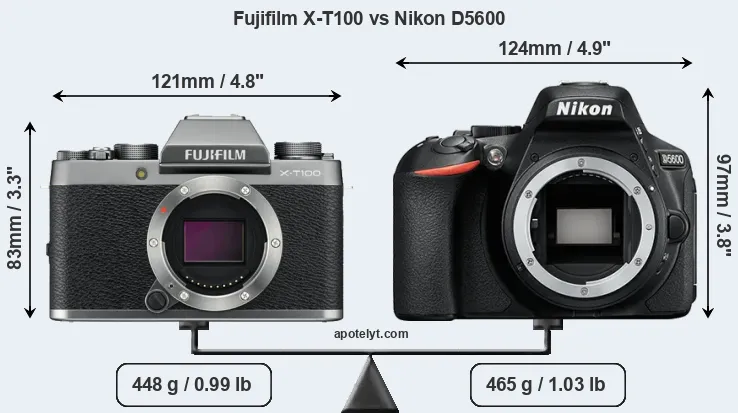 | Body Specs | Fujifilm X-T100 | Nikon D5600 |