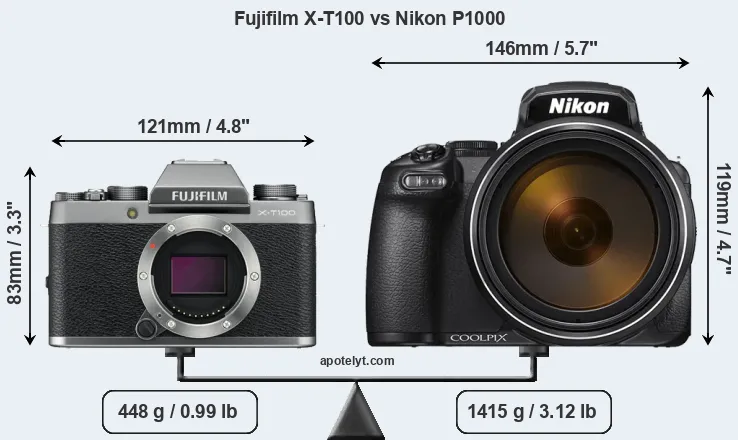 | Body Specs | Fujifilm X-T100 | Nikon P1000 |