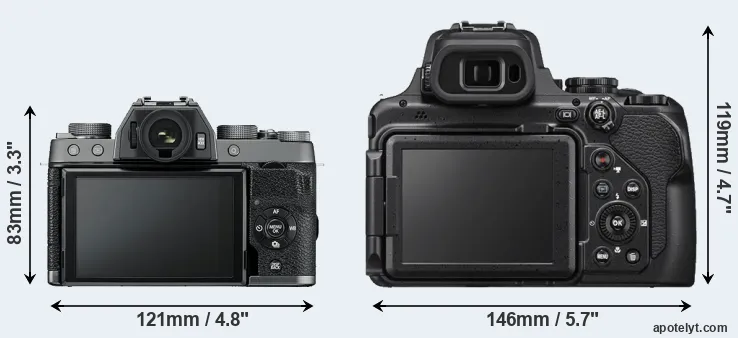 Going beyond this snapshot of core features and characteristics, what are the differences between the Fujifilm X-T100 and the Nikon Coolpix P1000? Which one should you buy? Read on to find out how these two cameras compare with respect to their body size, their imaging sensors, their shooting features, their input-output connections, and their reception by expert reviewers.