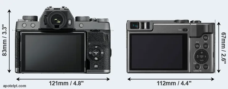The above size and weight comparisons are to some extent incomplete and possibly misleading, as the ZS70 has a lens built in, whereas the X-T100 is an interchangeable lens camera that requires a separate lens. Attaching the latter will add extra weight and bulk to the setup. You can compare the optics available for the X-T100 and their specifications in the Fujinon X Lens Catalog.