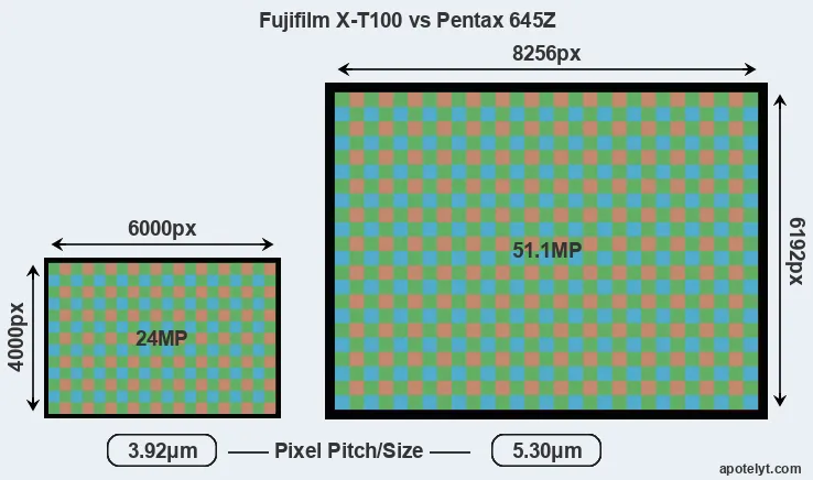 | Sensor Specs | Fujifilm X-T100 | Pentax 645Z |