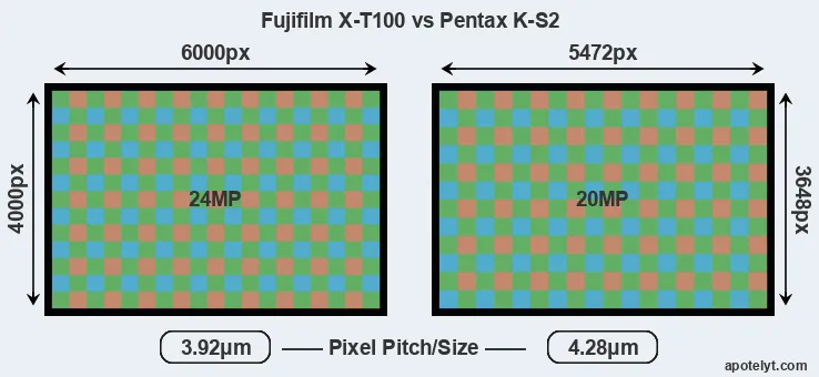 | Sensor Specs | Fujifilm X-T100 | Pentax K-S2 |