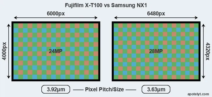 | Sensor Specs | Fujifilm X-T100 | Samsung NX1 |