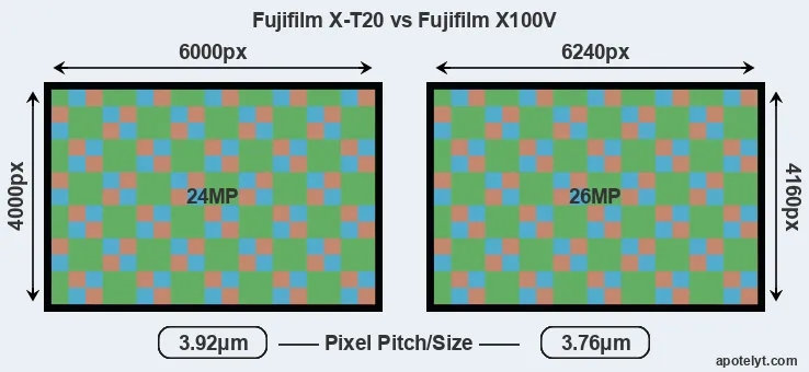 | Sensor Specs | Fujifilm X-T20 | Fujifilm X100V |
