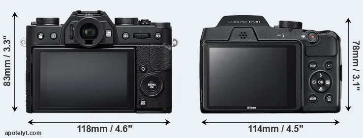 | Body Specs | Fujifilm X-T20 | Nikon B500 |