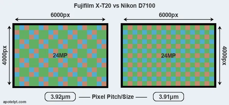 | Sensor Specs | Fujifilm X-T20 | Nikon D7100 |