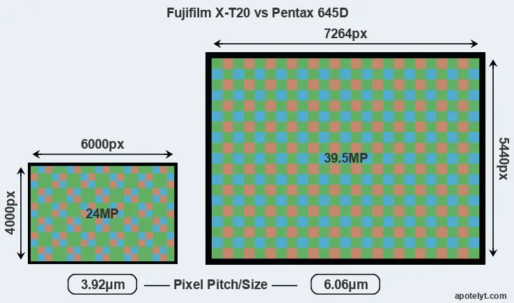 | Sensor Specs | Fujifilm X-T20 | Pentax 645D |