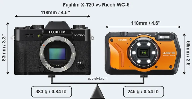| Body Specs | Fujifilm X-T20 | Ricoh WG-6 |