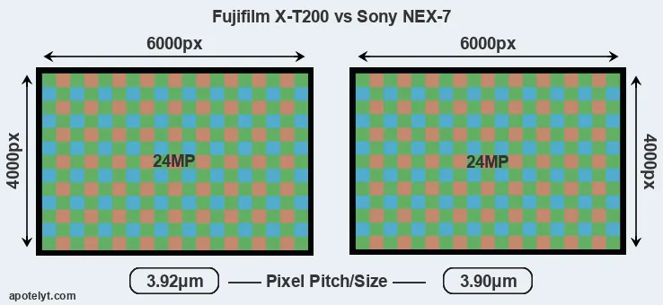 | Sensor Specs | Fujifilm X-T200 | Sony NEX-7 |
