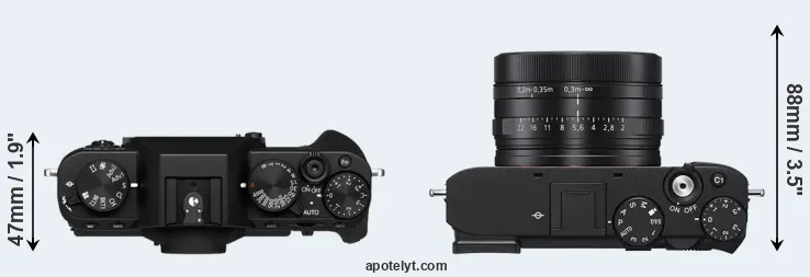| 14. | Fujifilm X100V | 128 mm | 75 mm | 53 mm | 478 g | 420 | Y | Feb 2020 | US$ 1 399 | ebay.com | |