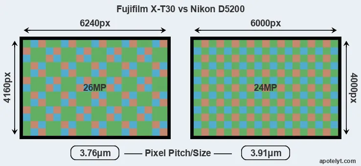 | Sensor Specs | Fujifilm X-T30 | Nikon D5200 |