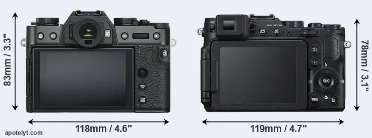 If the front view area (width x height) of the cameras is taken as an aggregate measure of their size, the Nikon P7800 is notably smaller (5 percent) than the Fujifilm X-T30. In this context, it is worth noting that neither the X-T30 nor the P7800 are weather-sealed.