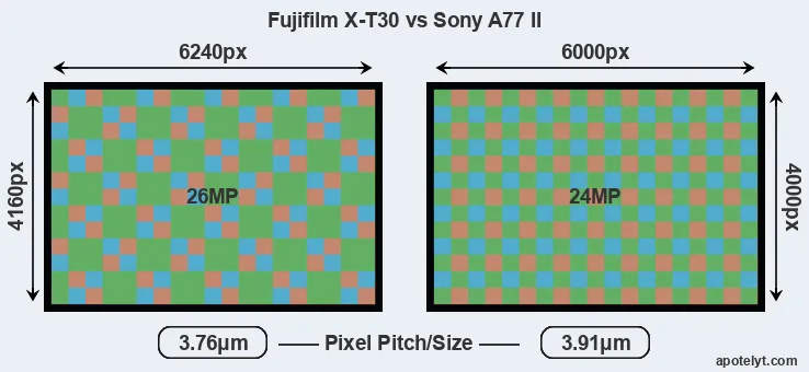 | Sensor Specs | Fujifilm X-T30 | Sony A77 II |