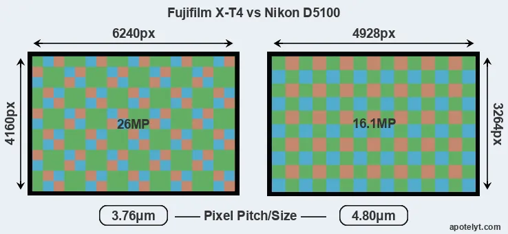 | Sensor Specs | Fujifilm X-T4 | Nikon D5100 |