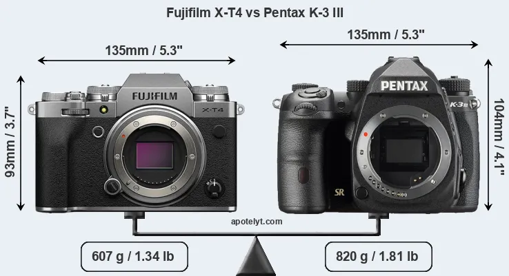 | Body Specs | Fujifilm X-T4 | Pentax K-3 III |
