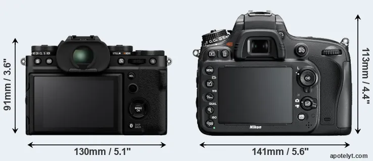 Going beyond this snapshot of core features and characteristics, what are the differences between the Fujifilm X-T5 and the Nikon D600? Which one should you buy? Read on to find out how these two cameras compare with respect to their body size, their imaging sensors, their shooting features, their input-output connections, and their reception by expert reviewers.