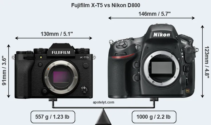 Size Fujifilm X-T5 vs Nikon D800
