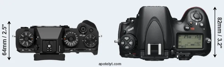 Compare X-T5 versus D800 top