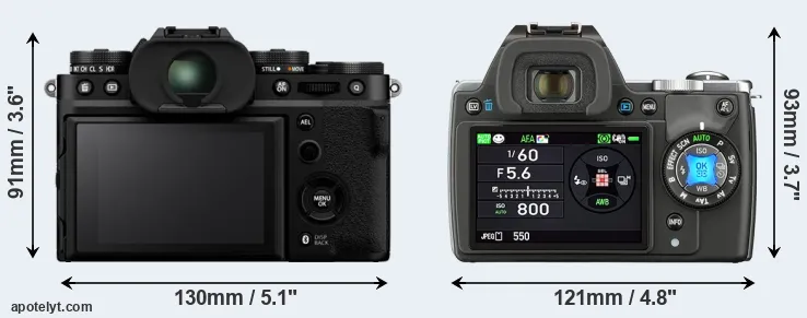 | Body Specs | Fujifilm X-T5 | Pentax K-S1 |