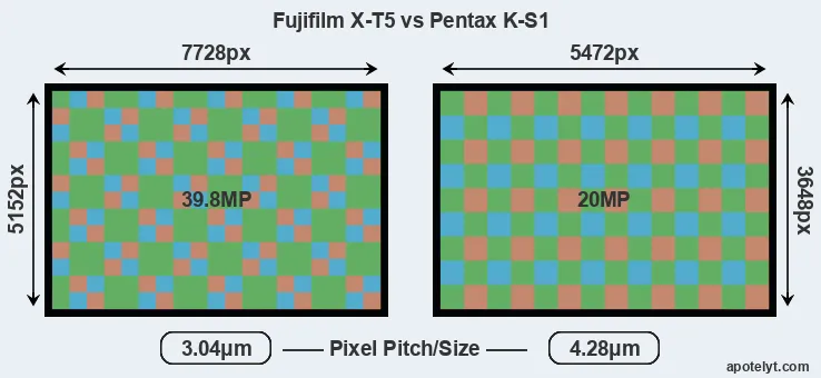 | Sensor Specs | Fujifilm X-T5 | Pentax K-S1 |