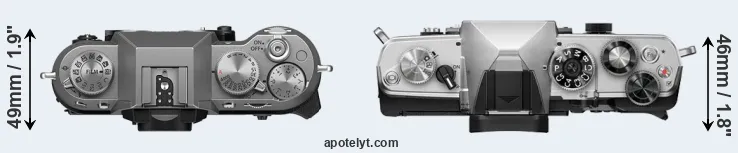 | 1. | Fujifilm X-T50 | 124 mm | 84 mm | 49 mm | 438 g | 305 | n | May 2024 | US$ 1 399 | amazon.com | |