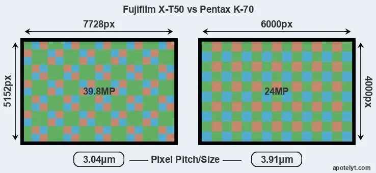 | Sensor Specs | Fujifilm X-T50 | Pentax K-70 |