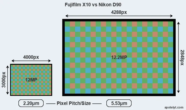 | Sensor Specs | Fujifilm X10 | Nikon D90 |