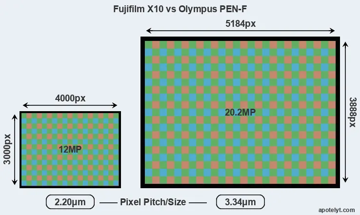 | Sensor Specs | Fujifilm X10 | Olympus PEN-F |