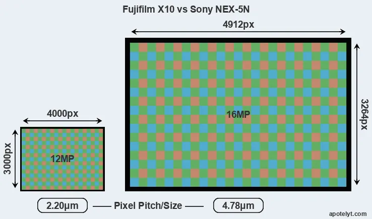 | Sensor Specs | Fujifilm X10 | Sony NEX-5N |