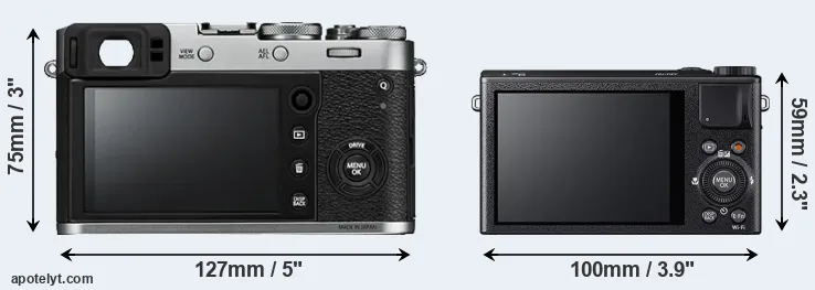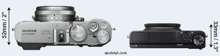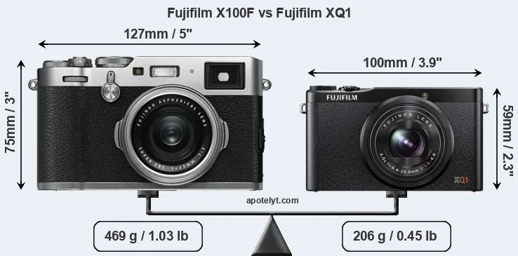 The side-by-side display below illustrates the physical size and weight of the Fujifilm X100F and the Fujifilm XQ1. The two cameras are presented according to their relative size. Three consecutive perspectives from the front, the top, and the back are available. All width, height and depth dimensions are rounded to the nearest millimeter.