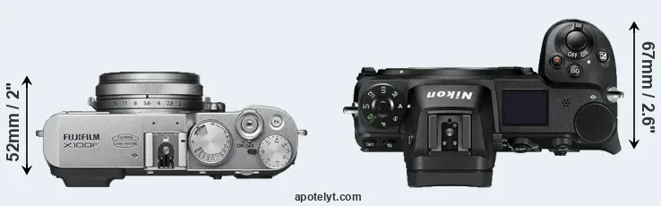 The above size and weight comparisons are to some extent incomplete and possibly misleading, as the X100F has a lens built in, whereas the Z7 is an interchangeable lens camera that requires a separate lens. Attaching the latter will add extra weight and bulk to the setup.