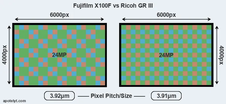 | Sensor Specs | Fujifilm X100F | Ricoh GR III |