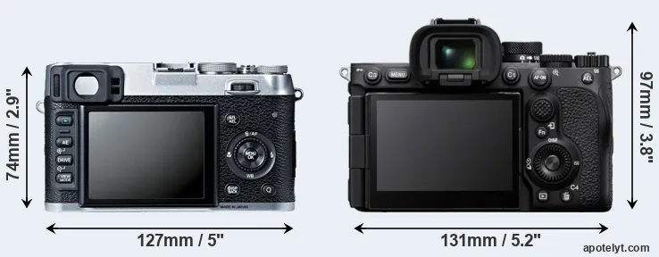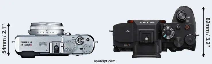 The above size and weight comparisons are to some extent incomplete and possibly misleading, as the X100S has a lens built in, whereas the A7R V is an interchangeable lens camera that requires a separate lens. Attaching the latter will add extra weight and bulk to the setup. You can compare the optics available for the A7R V and their specifications in the Sony FE Lens Catalog.