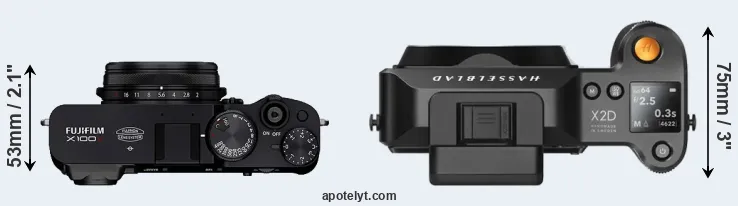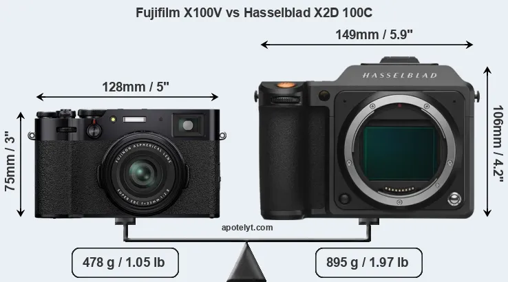 | Body Specs | Fujifilm X100V | Hasselblad X2D 100C |