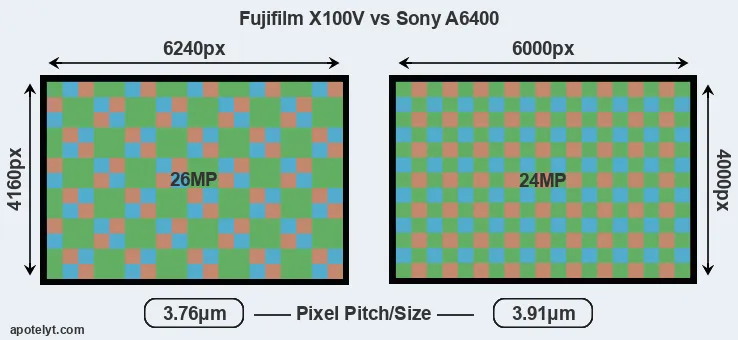 | Sensor Specs | Fujifilm X100V | Sony A6400 |