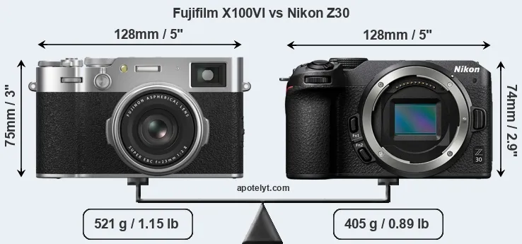 | Body Specs | Fujifilm X100VI | Nikon Z30 |