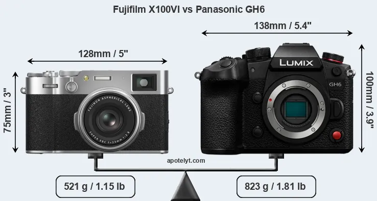The above size and weight comparisons are to some extent incomplete and possibly misleading, as the X100VI has a lens built in, whereas the GH6 is an interchangeable lens camera that requires a separate lens. Attaching the latter will add extra weight and bulk to the setup. You can compare the optics available for the GH6 and their specifications in the Micro Four Thirds Lens Catalog.
