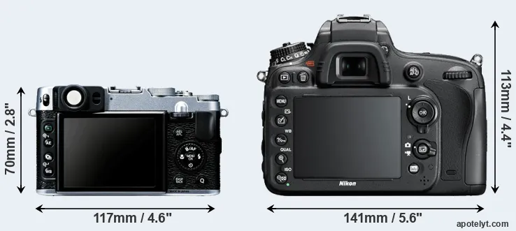 If the front view area (width x height) of the cameras is taken as an aggregate measure of their size, the Nikon D600 is considerably larger (95 percent) than the Fujifilm X20. It is noteworthy in this context that the D600 is splash and dust-proof, while the X20 does not feature any corresponding weather-sealing.