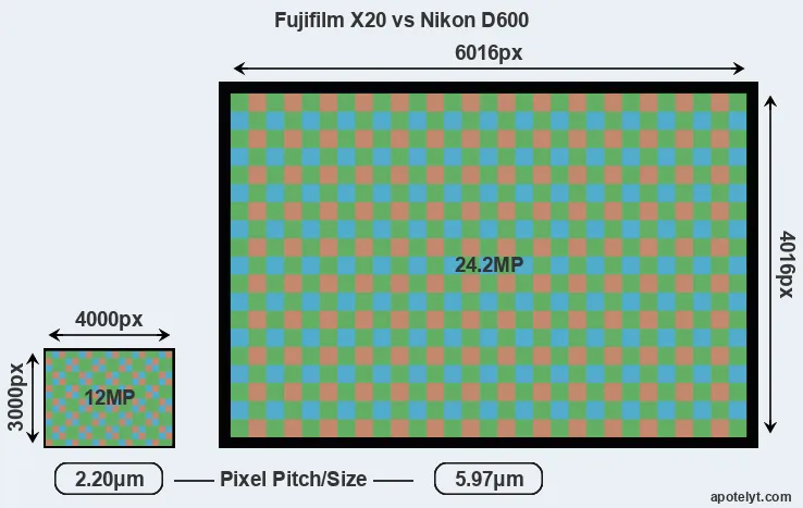 | Sensor Specs | Fujifilm X20 | Nikon D600 |