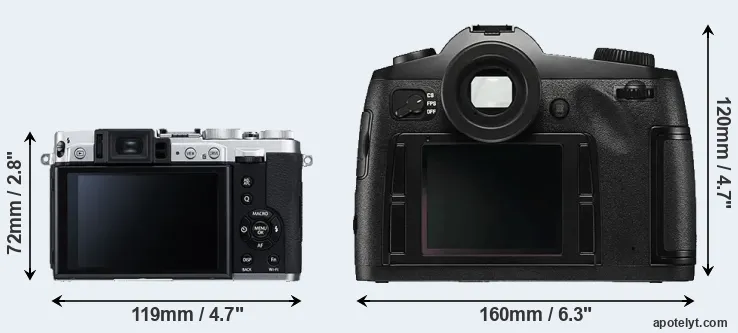 If the front view area (width x height) of the cameras is taken as an aggregate measure of their size, the Leica S Typ 006 is considerably larger (124 percent) than the Fujifilm X30. It is noteworthy in this context that the S Typ 006 is splash and dust-proof, while the X30 does not feature any corresponding weather-sealing.
