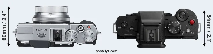 The Fujifilm X30 and the Panasonic Lumix DC-G110 (labelled Panasonic G100 in some countries) are two digital cameras that were revealed to the public, respectively, in August 2014 and June 2020. The X30 is a fixed lens compact, while the G110 is a mirrorless interchangeable lens camera. The cameras are based on a 2/3 (X30) and a Four Thirds (G110) sensor. The Fujifilm has a resolution of 12 megapixels, whereas the Panasonic provides 20.2 MP.