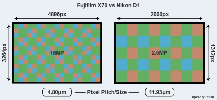 | Sensor Specs | Fujifilm X70 | Nikon D1 |