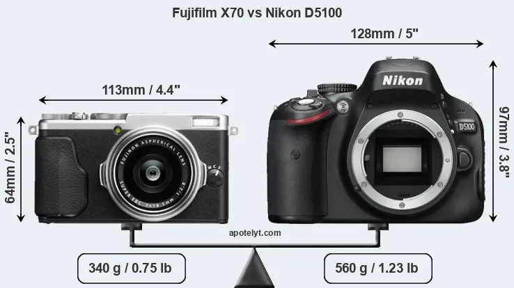 | Body Specs | Fujifilm X70 | Nikon D5100 |